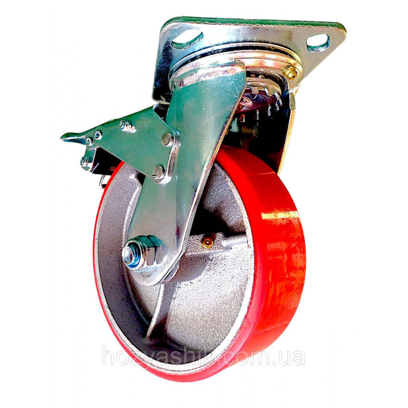 Колесо 150 мм поворотне з гальмом, чавун/поліуретан, навантаження до 430 кг