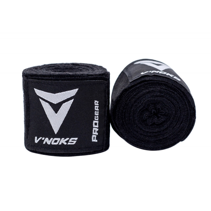 Бинти боксерські V'Noks (Вінокс) 3м використовуються для фіксації зап'ястя і захисту рук при заняттях різними видами бойових мистецтв: боксом, кіксбоксингом, ММА, муай тай. Практичний варіант для будь-якого спортсмена від V'Noks (Вінокс): виконані в чорному кольорі, відрізняються помірною еластичністю (склад: 70% бавовна, 30% нейлону), прикрашені лейблами впізнаваного бренду.
